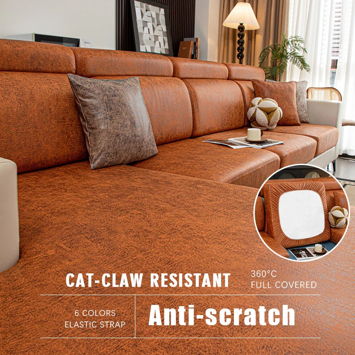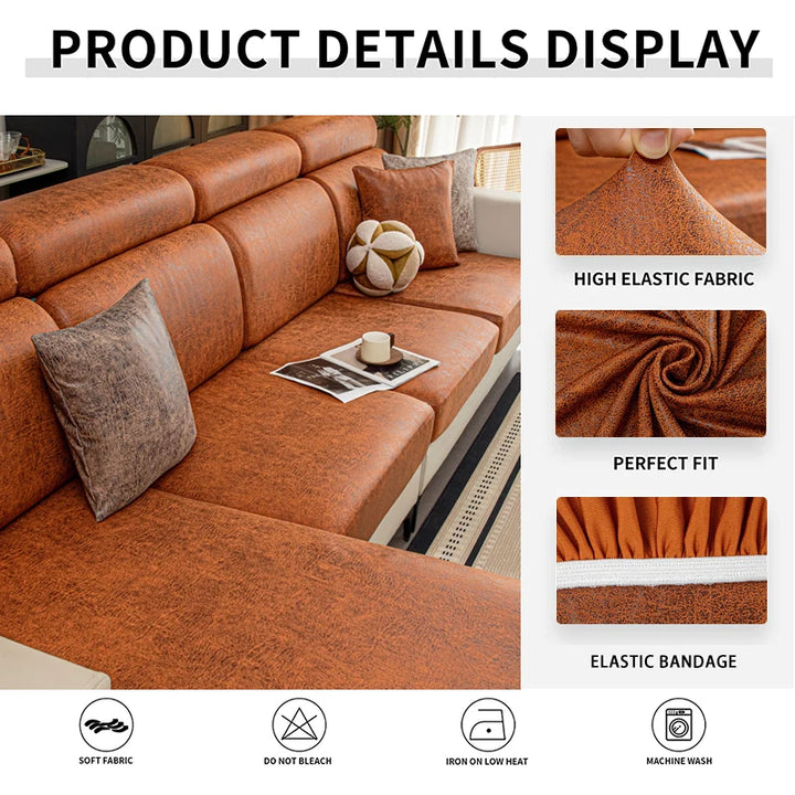Leather-Look Stretch Sofa Cushion Covers