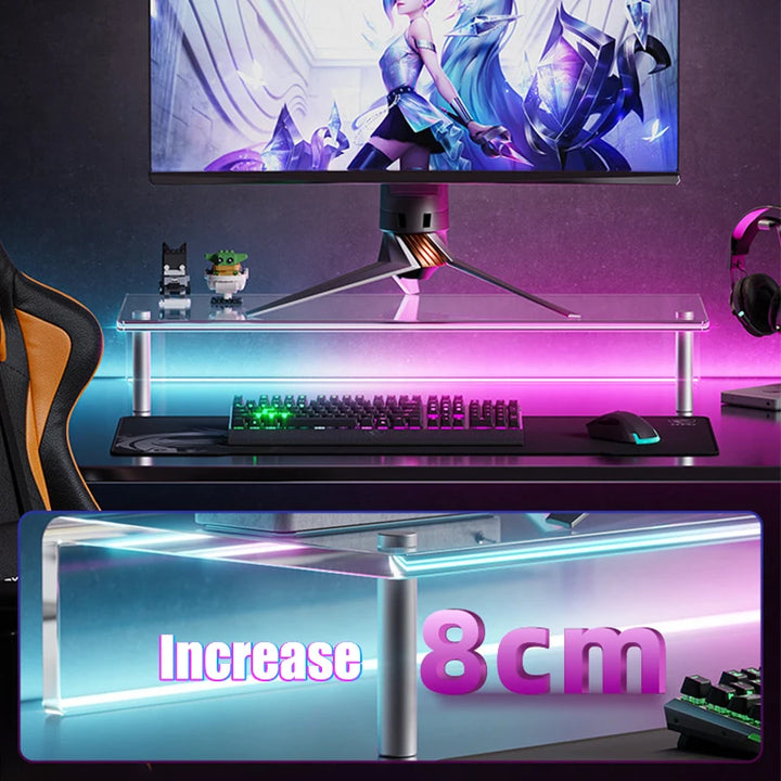 Reduce neck strain and organize your workspace with this Acrylic Laptop Stand. Designed for laptops and desktop monitors, it elevates your screen to an ergonomic height while keeping your desk tidy. Perfect for home offices, studios, or gaming setups, combining functionality with a sleek, modern design.