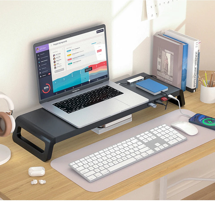 Upgrade your desk with this sleek Computer Monitor Stand Riser — available with or without a built-in USB 3.0 hub. It elevates your screen for better posture and provides organized storage for your keyboard, mouse, and accessories. A perfect blend of functionality and modern design, with fast shipping for your convenience.