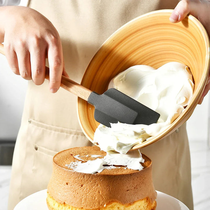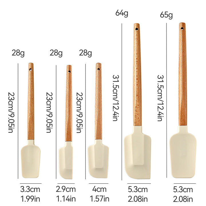 Each utensil is crafted from heat-resistant, non-stick silicone for smooth blending, scraping, and mixing. The ergonomic wooden handles provide a comfortable grip and add a stylish, natural touch to your kitchen.