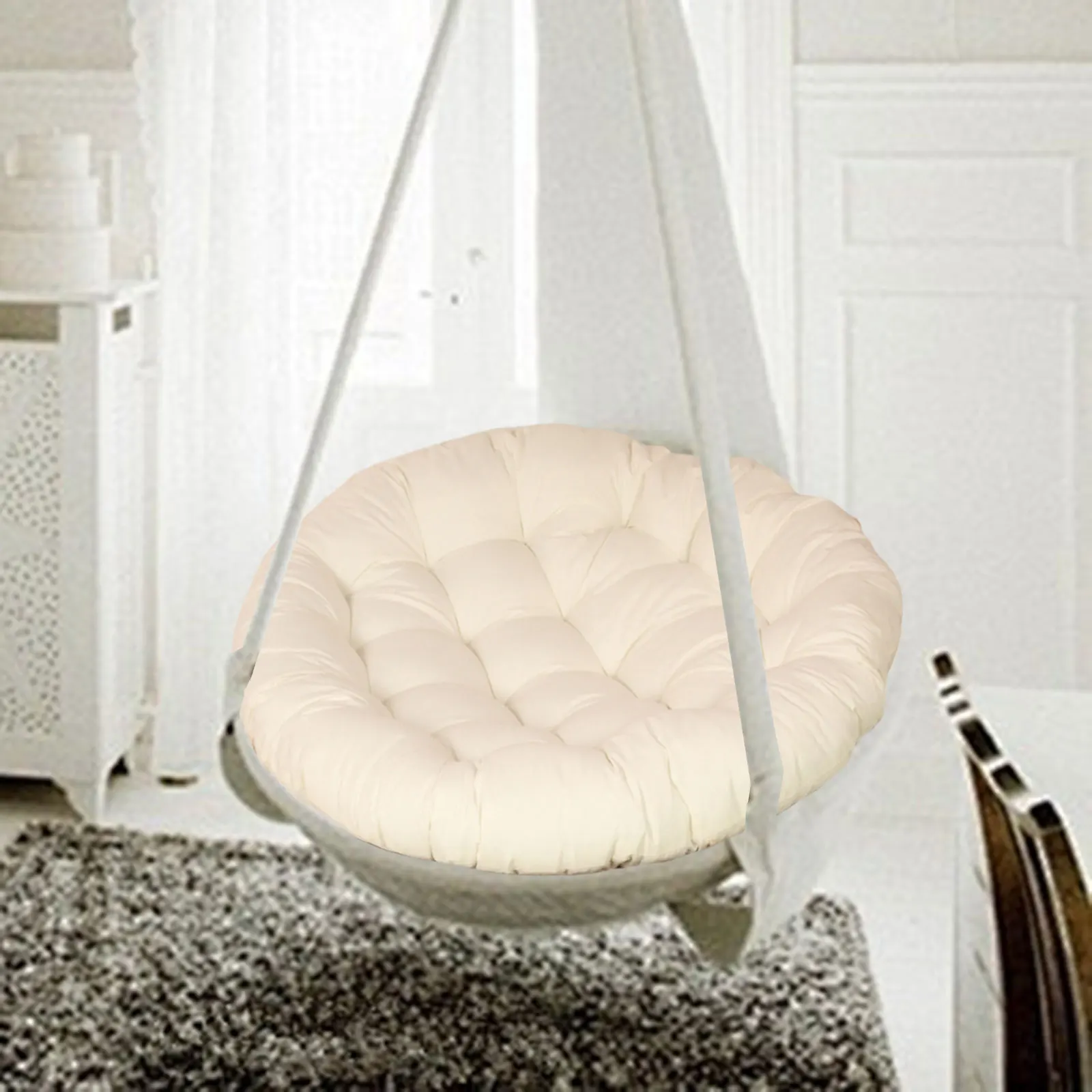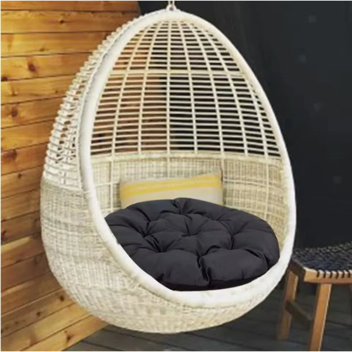Comfortable round cushion for swing or hanging basket chairs. Perfect for indoor and outdoor use, this rattan chair pad adds softness and style to garden swings, sofas, or patio seating.