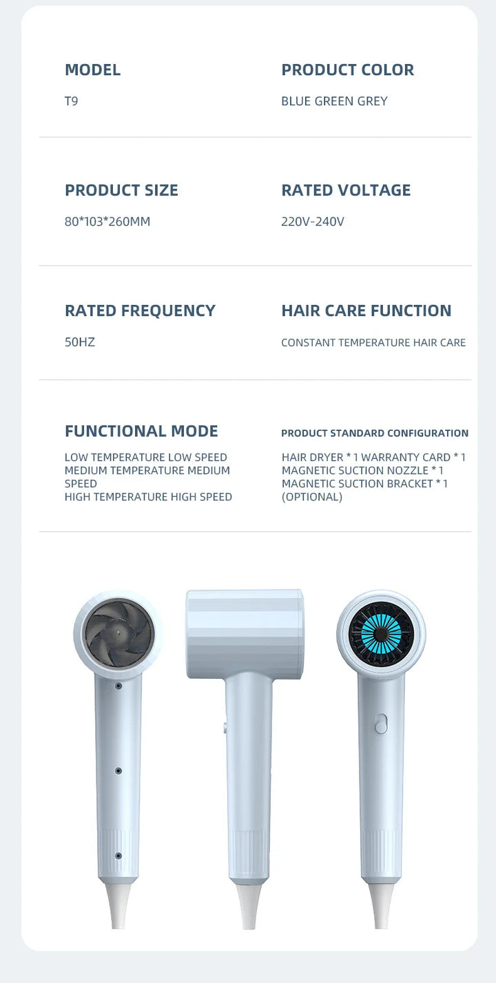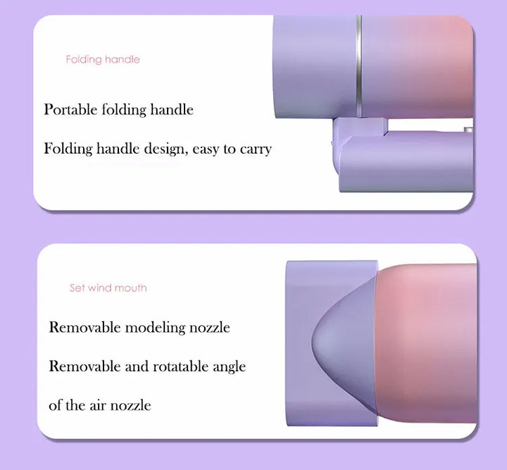 Compact and convenient, this 750W mini folding hair dryer is perfect for home, travel, or dorm use. Features hot air and anion technology for smooth, frizz-free hair. Comes with a carrying bag for easy portability and storage. Compatible with 220V–240V power supply.