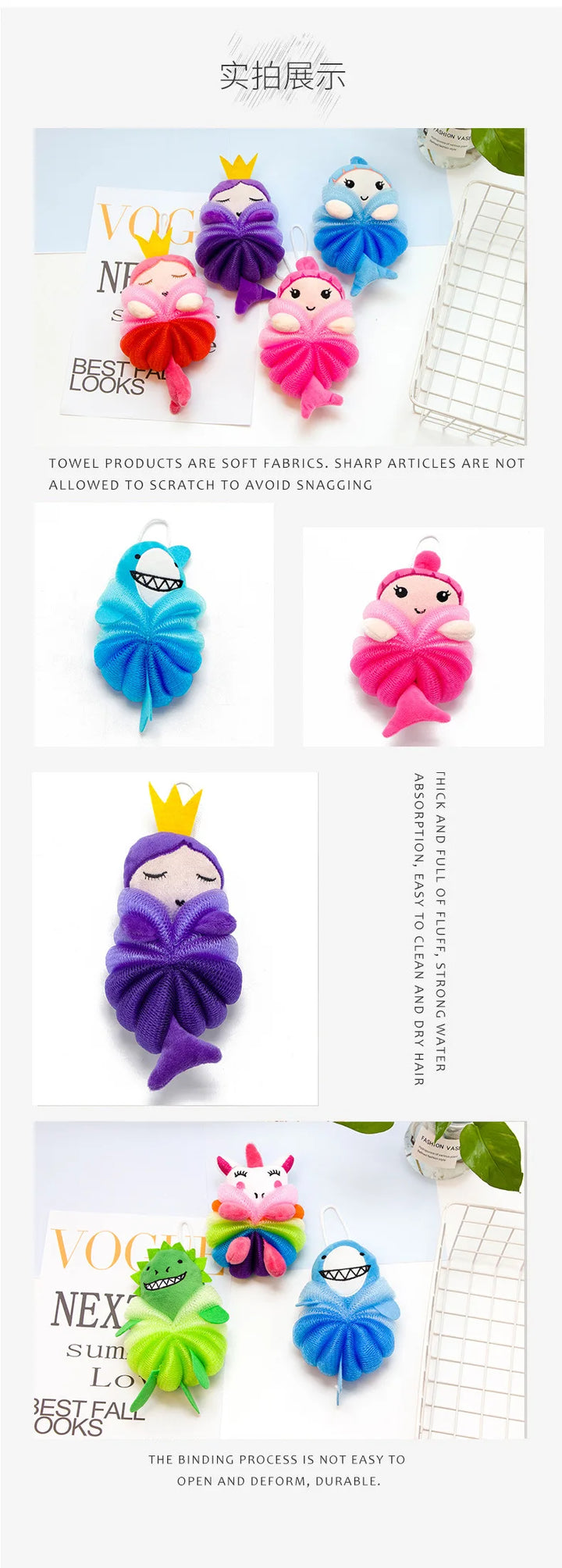 Purple Crown Mermaid, Blue Mermaid, Pink Mermaid, Blue Shark, Green Dinosaur, Unicorn |