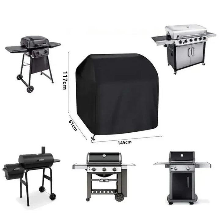 Heavy-duty BBQ grill cover designed to protect outdoor grills, fire pits, and stoves from rain, dust, and UV damage. Durable and weather-resistant, perfect for year-round outdoor barbecue protection.