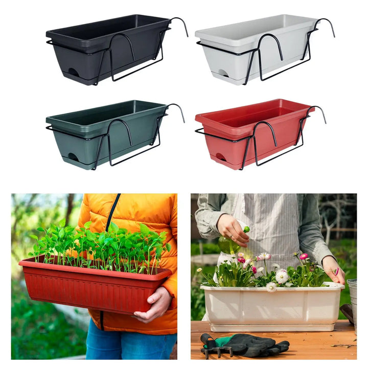 Hanging Flower Pot for Fence & Balcony – Flower Box with Drainage Hole and Removable Tray, 43x19x15 cm