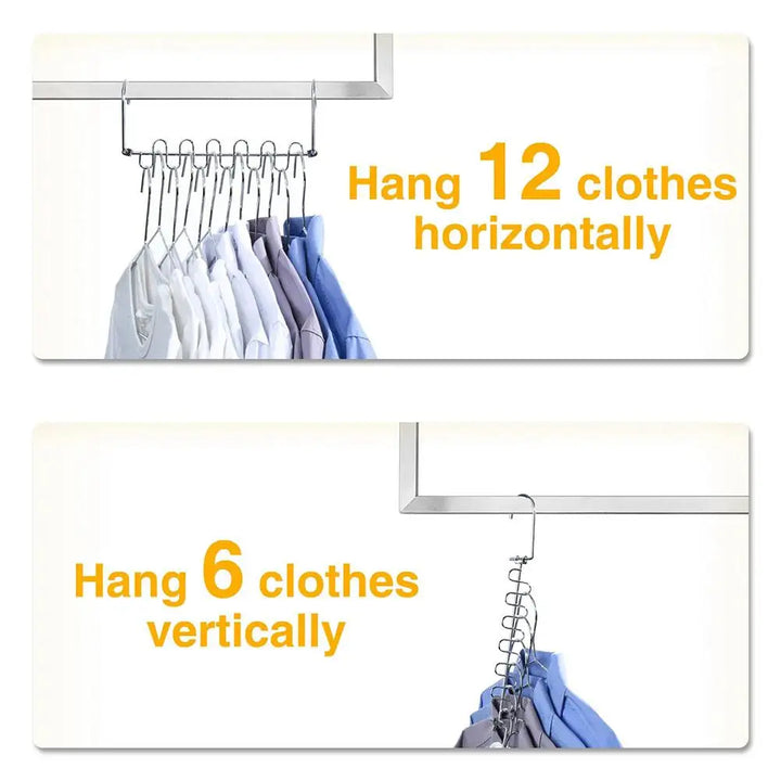 Maximize your closet space with this 360° Swivel Multi-Functional Clothes Hanger. Designed to hold up to 12 hangers, it’s perfect for organizing clothes, pants, scarves, and ties. The rotating hook allows easy access and flexible hanging, making it an ideal space-saving solution for wardrobes, bedrooms, and laundry rooms.