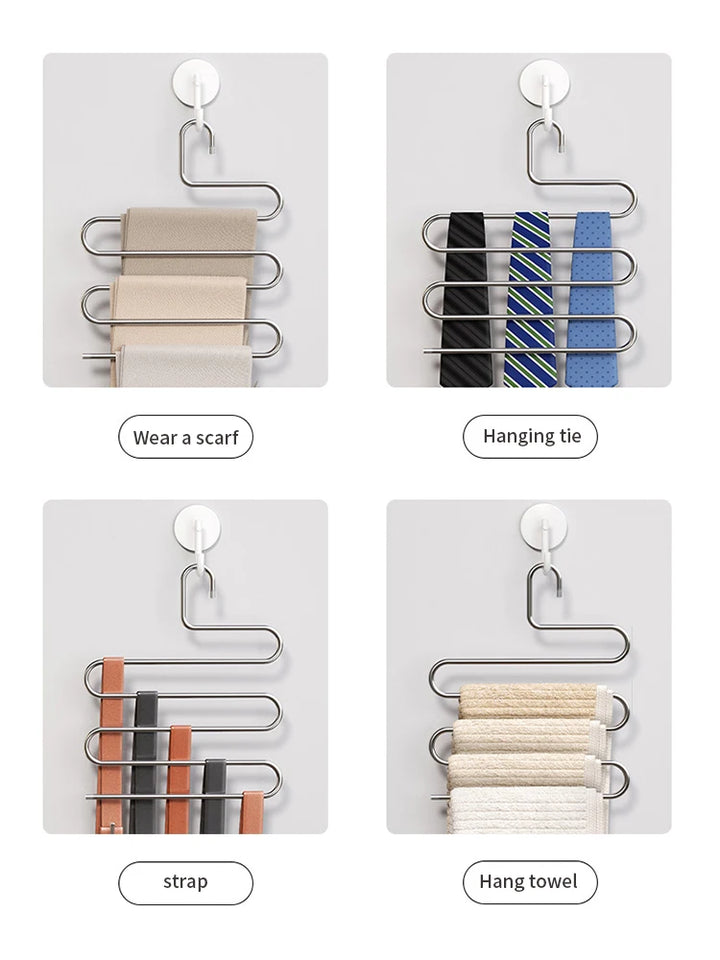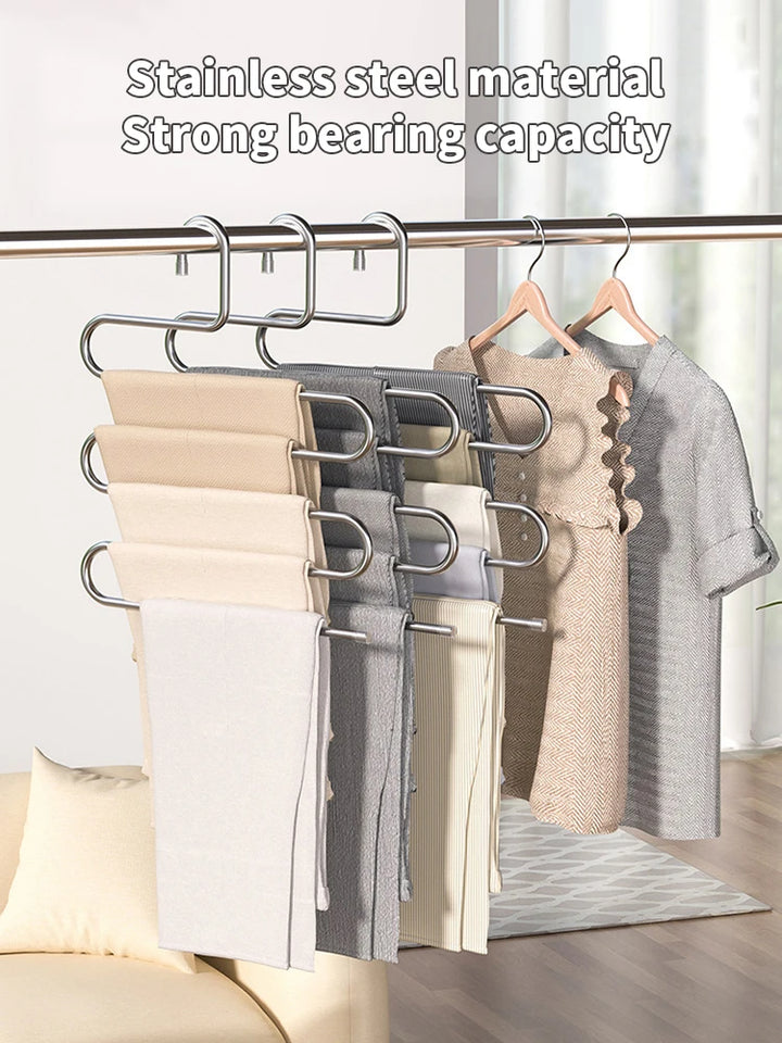 Organize your wardrobe efficiently with the 5-Layer Stainless Steel Pants Hanger, designed to hold multiple pairs of pants, trousers, or scarves in one compact rack. Made from durable, rust-resistant stainless steel, it’s built to last and maintain shape under heavy use. The multi-layer, space-saving design keeps your closet neat while maximizing storage — a perfect solution for tidy and modern home organization.