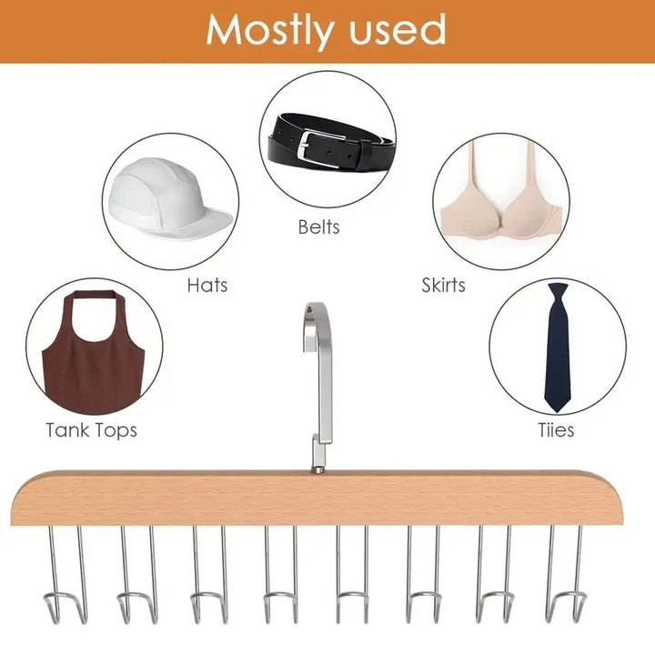 Maximize your closet space with the Wooden 8-Hook 360° Rotating Clothes Hanger. Crafted from high-quality, heavy-duty wood, this elegant hanger features 8 sturdy hooks and a fully rotatable design for easy access and versatile organization. Perfect for hanging bras, scarves, ties, belts, or accessories, it combines durability, style, and practicality — keeping your wardrobe neat, organized, and space-efficient.