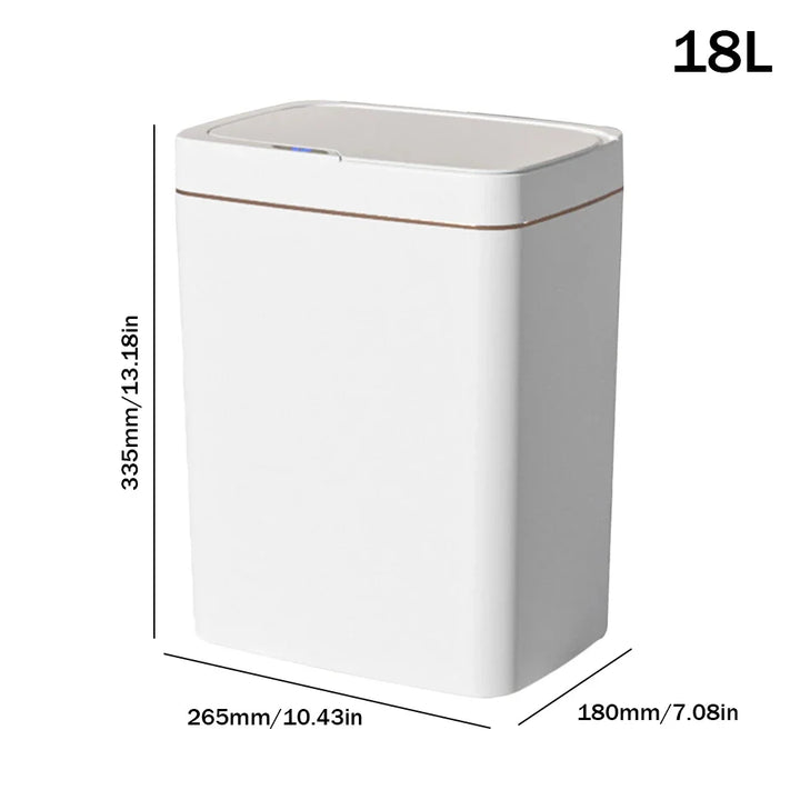 15/18L smart sensor trash can with waterproof design and quiet automatic lid. Hygienic, touchless rubbish bin ideal for kitchen, bathroom, or home use.