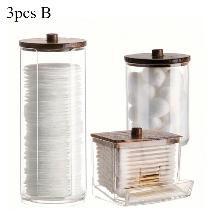 Keep your vanity neat and elegant with the 3pcs Clear Cotton Swab & Pad Holder Set. Made from durable transparent acrylic, these sleek canisters are perfect for storing cotton balls, swabs, pads, and floss picks. Their modern, space-saving design makes them ideal for bathroom counters, dressing tables, or makeup stations, offering both style and practicality for everyday organization.