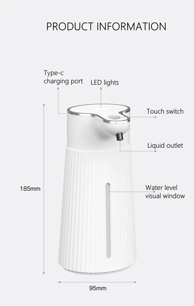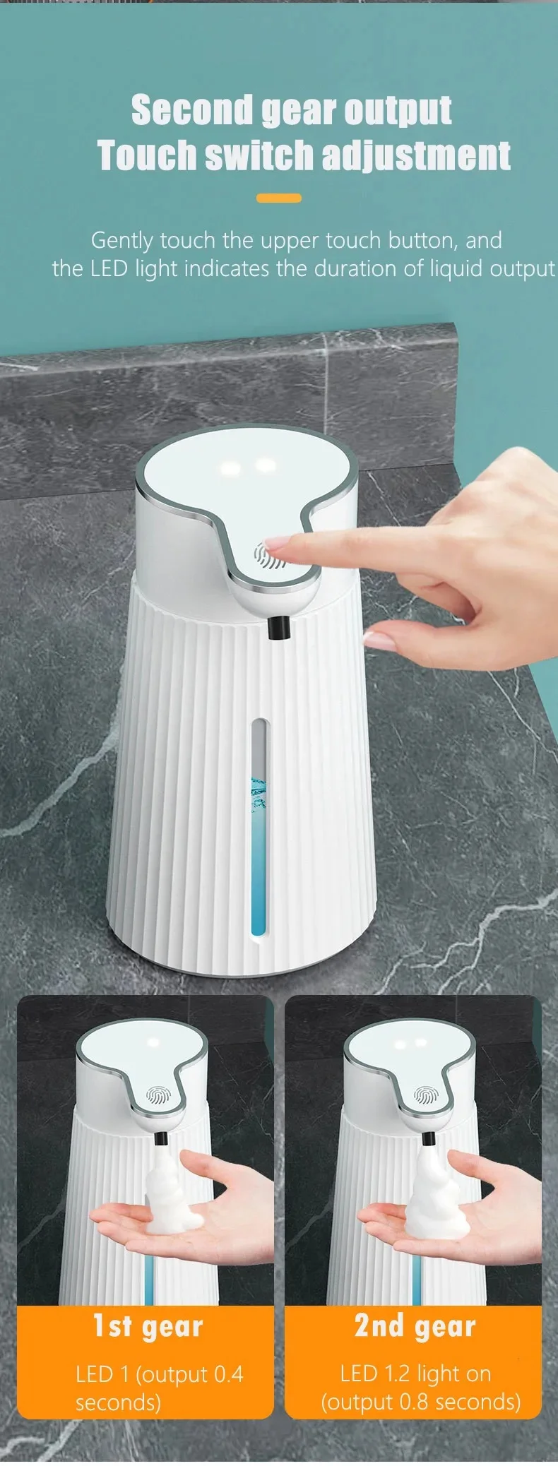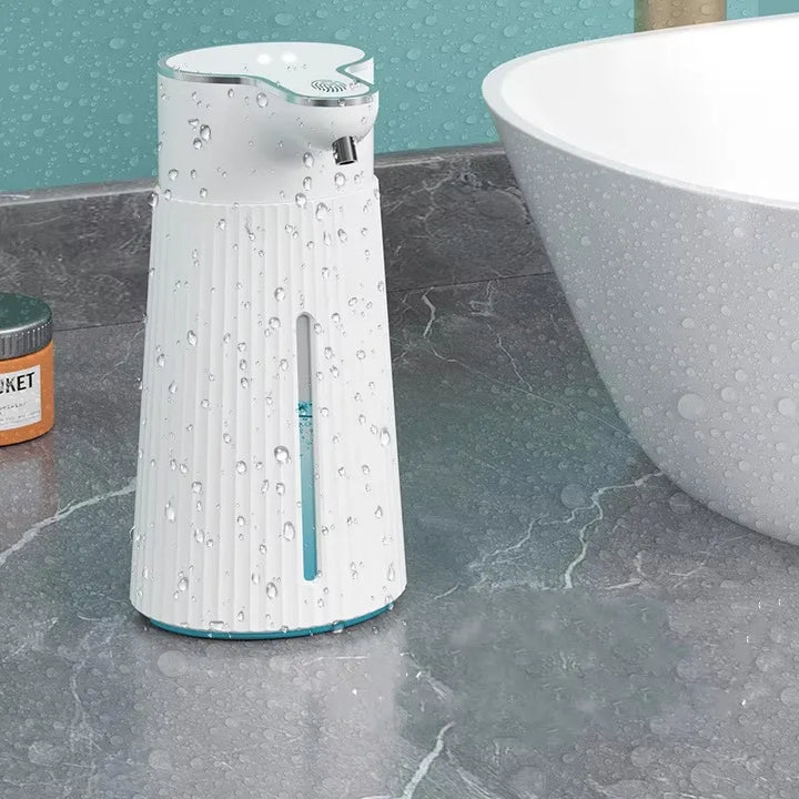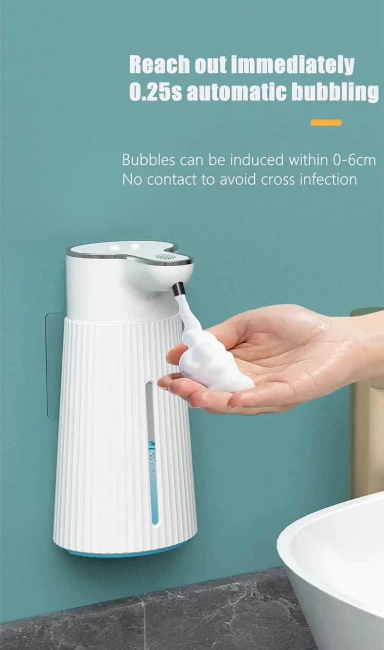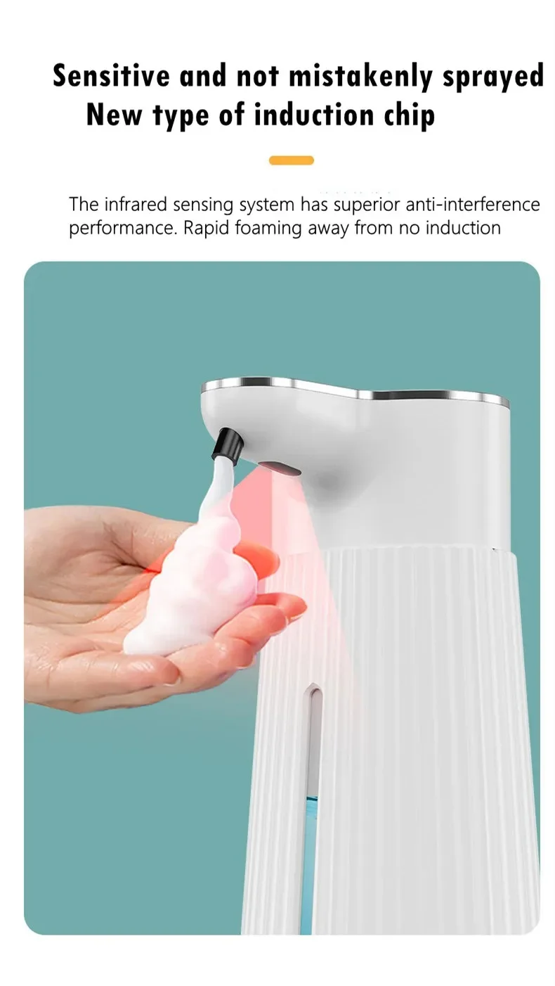 A smart, automatic foam soap dispenser made of high-quality ABS material. USB rechargeable and ideal for hygienic, touchless handwashing in bathrooms or kitchens.