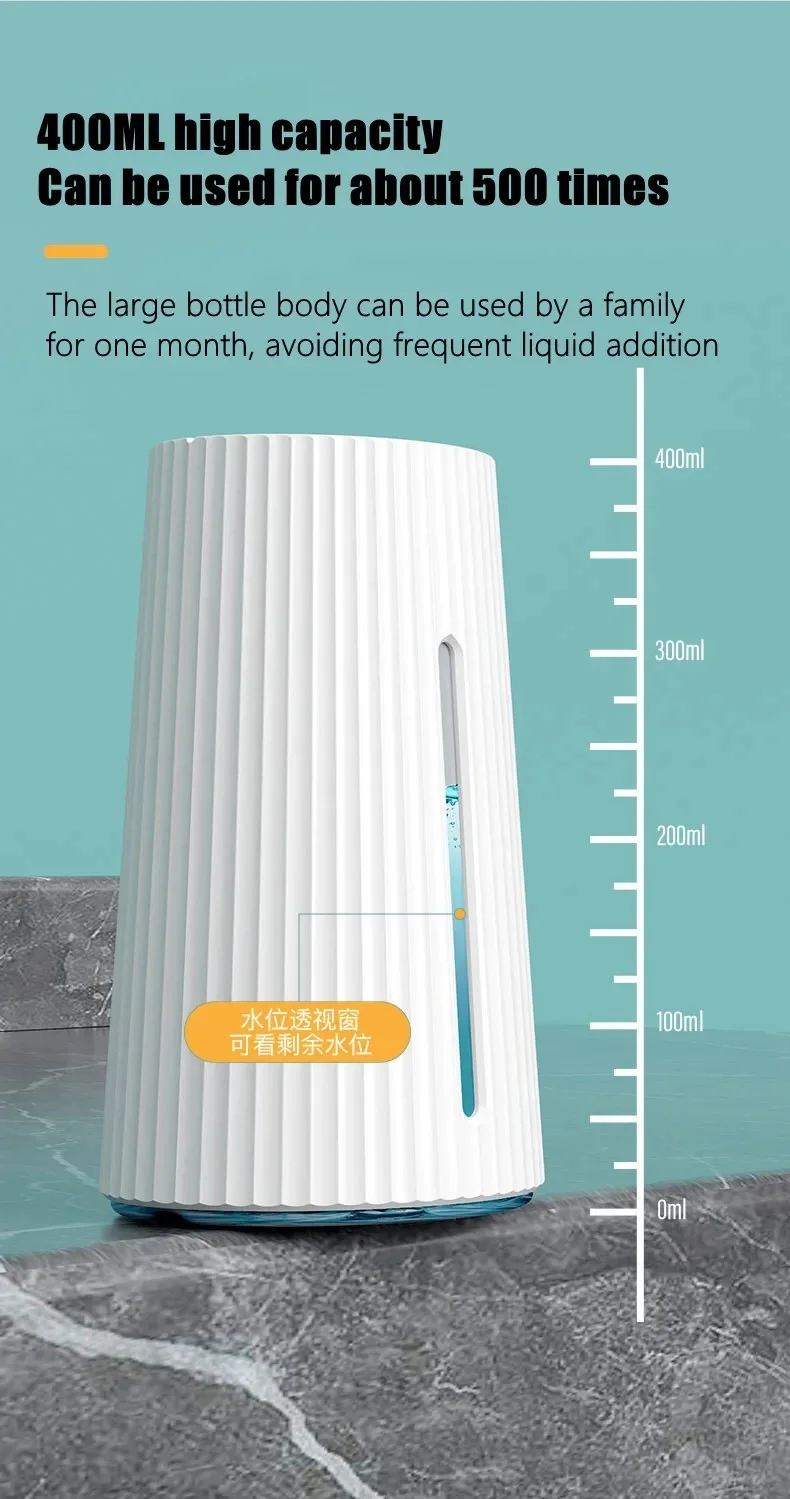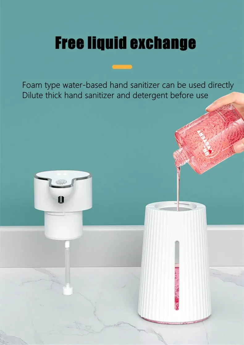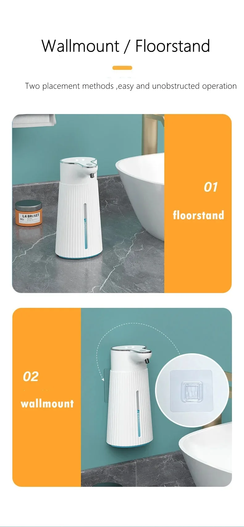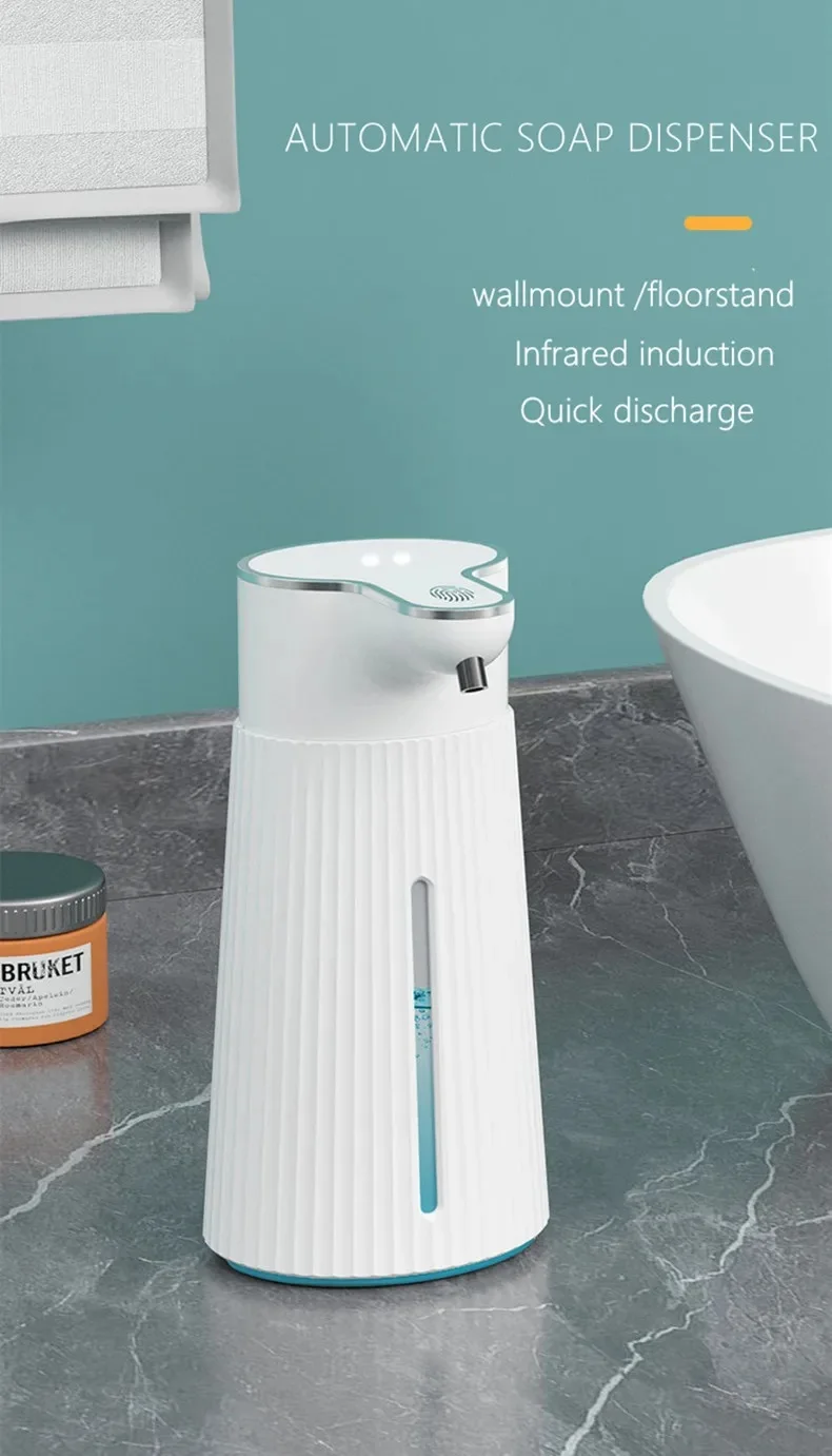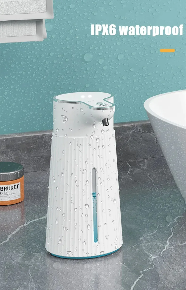 A smart, automatic foam soap dispenser made of high-quality ABS material. USB rechargeable and ideal for hygienic, touchless handwashing in bathrooms or kitchens.