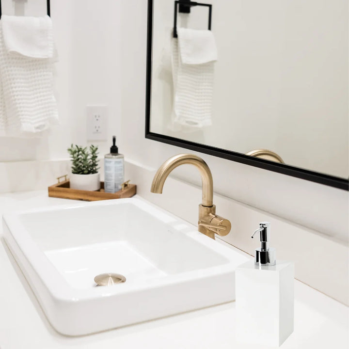 A modern, refillable white ceramic soap pump, ideal for dispensing lotion, soap, or other liquids in bathrooms and kitchens. Stylish and practical for everyday use.