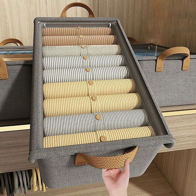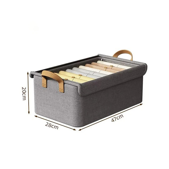 Durable cationic steel frame folding storage box for clothes, trousers, and household items. Perfect for wardrobes, drawers, and multi-functional home organization.