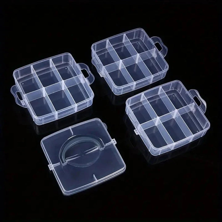A 3-layer transparent plastic storage box perfect for organizing jewelry, beads, pills, nail art tips, and small craft items. Keeps your accessories neatly separated and easily accessible.