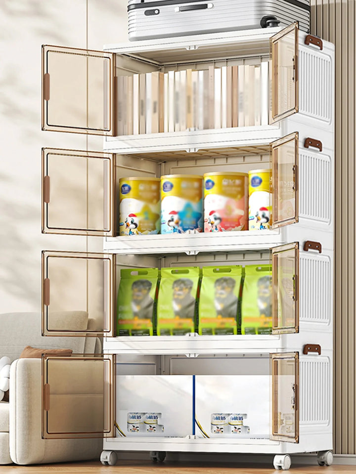 5-Layer Stackable Plastic Storage Boxes with Wheels – Foldable Containers with Lids