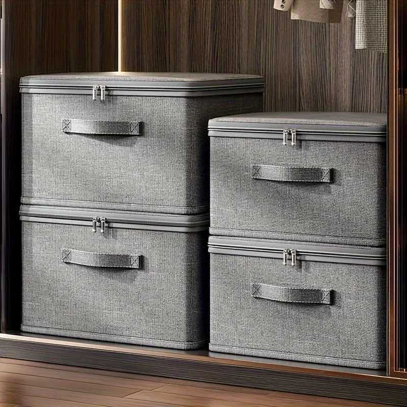 A multifunctional foldable storage box with a cloth cover, perfect for storing quilts, bras, underwear, and other clothing items. Large-capacity design keeps your wardrobe organized, dust-free, and easy to access.