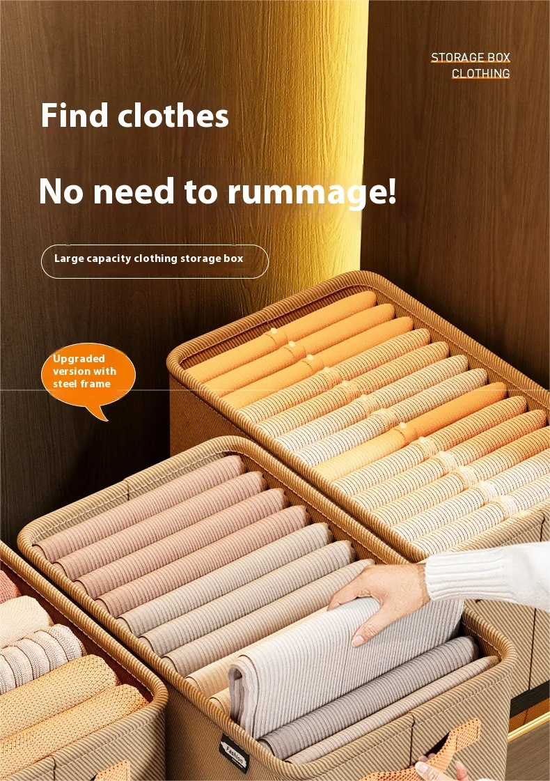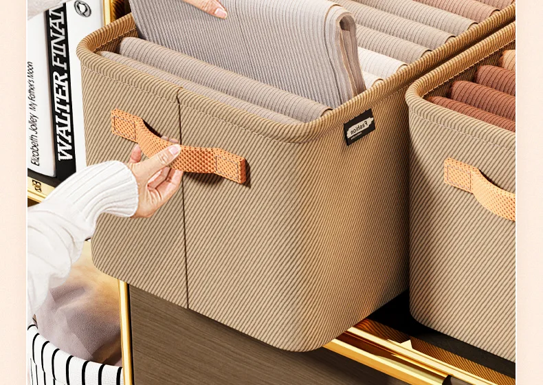 A durable, thickened fabric storage box ideal for organizing clothes, pants, and household items. Perfect for dormitories, wardrobes, and home organization, keeping your space tidy and clutter-free.