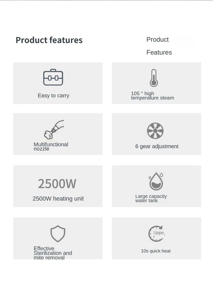 Available in 110V (US Plug) and 220V (EU Plug), this powerful multi-purpose steamer ensures hygienic cleaning without harsh chemicals.