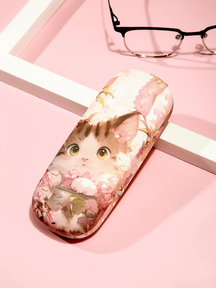 Stylish and durable hard shell glasses case with cute cartoon cat print. Portable and protective, perfect for keeping your eyewear safe from scratches and damage. Ideal for women and everyday use.