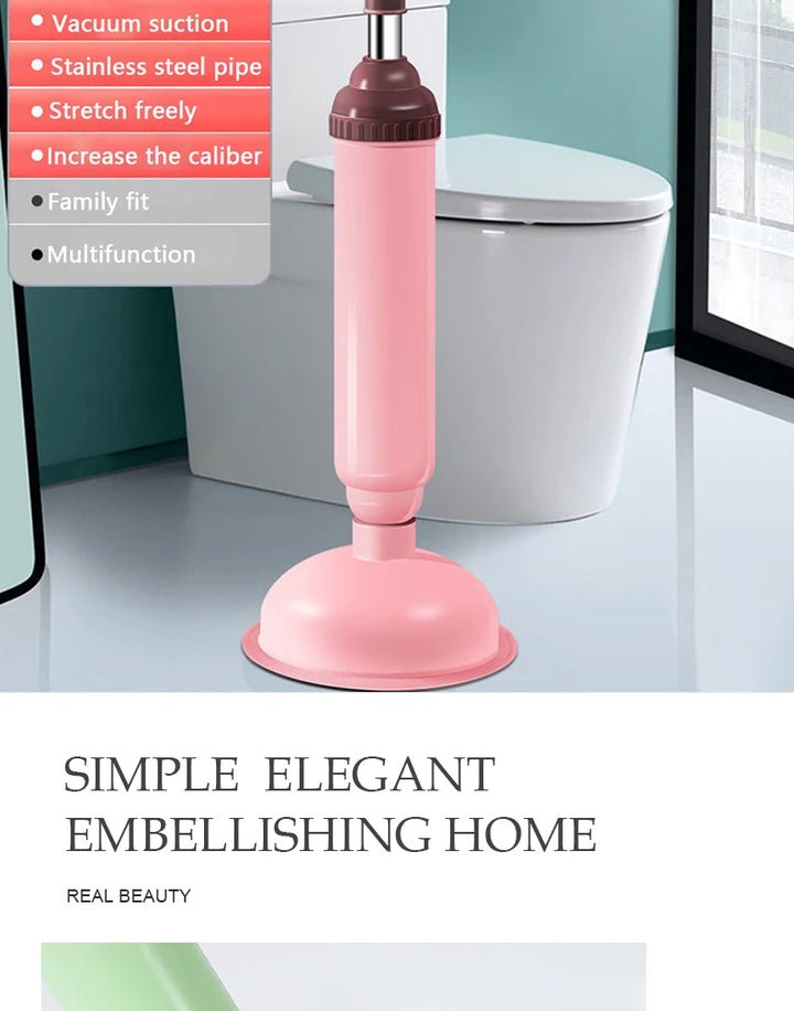 High-pressure silicone toilet plunger designed to quickly and effectively clear clogged drains. Suitable for toilets, sinks, and pipes in bathrooms and kitchens. Durable, easy to use, and essential for household plumbing maintenance