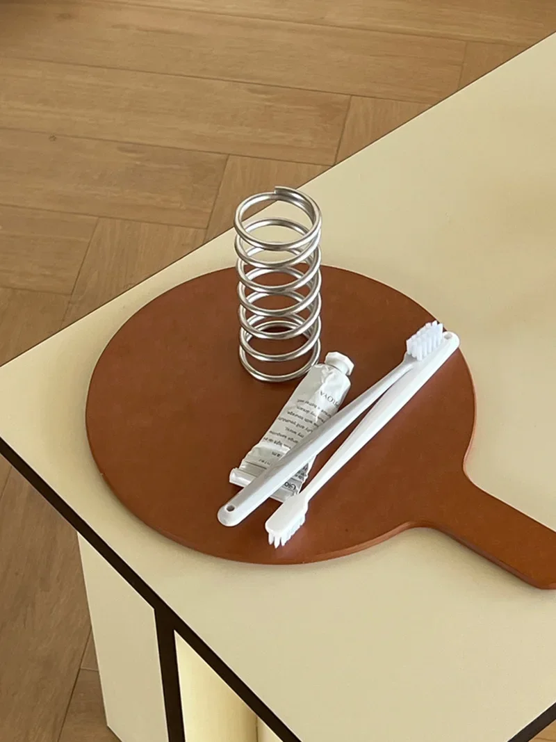 Durable stainless steel toothbrush holder with a sleek metal design, perfect for organizing toothbrushes, toothpaste, and makeup brushes. A practical and stylish bathroom accessory for neat and modern storage.