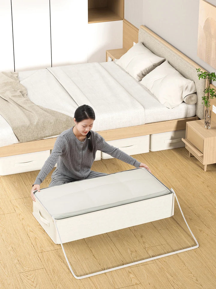 “1PC Cotton & Linen Transparent Under-Bed Storage Bag – Clothes & Household Organizer”