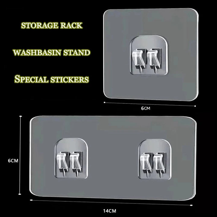 Waterproof strong adhesive hook shelf for bathroom or kitchen use. Provides screw-free wall storage for towels, toiletries, or kitchen items, keeping your space organized and accessible.