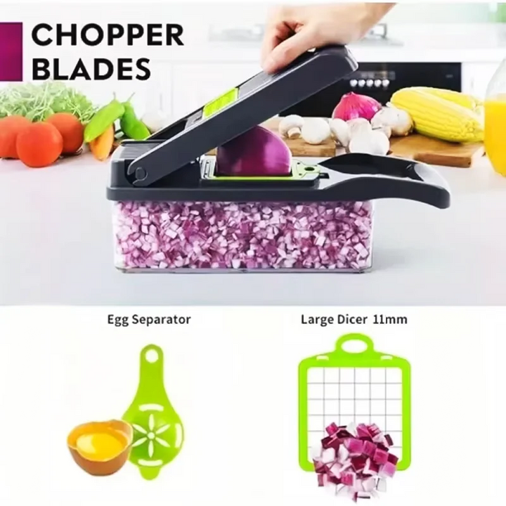 Each set includes interchangeable stainless steel blades, a large-capacity container, and non-slip base for safe and efficient cutting. Perfect for salads, stir-fries, or everyday cooking, this chopper combines durability, convenience, and versatility—a true kitchen essential for any home cook.
