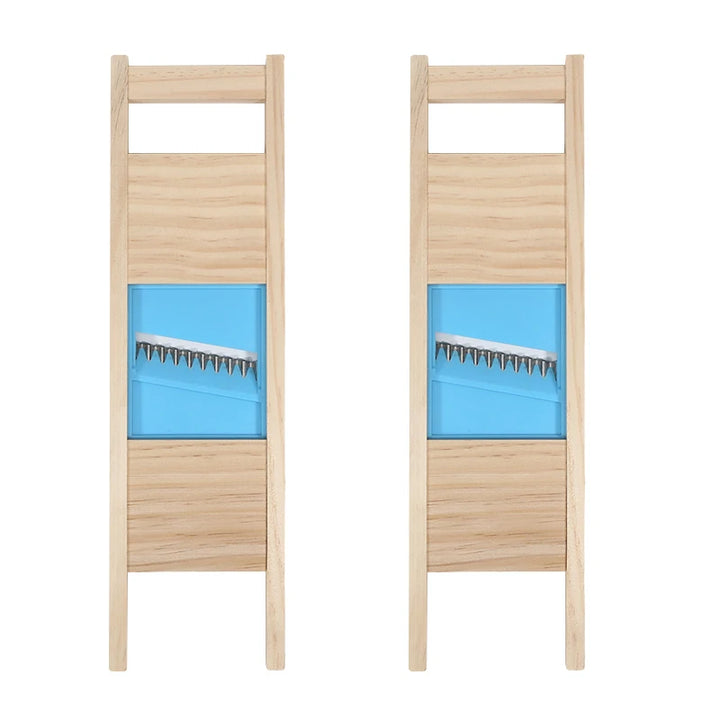 Stainless steel and wooden fries grid cutter for shredding potatoes and vegetables. Ideal for making chips, fries, and evenly sliced produce safely.