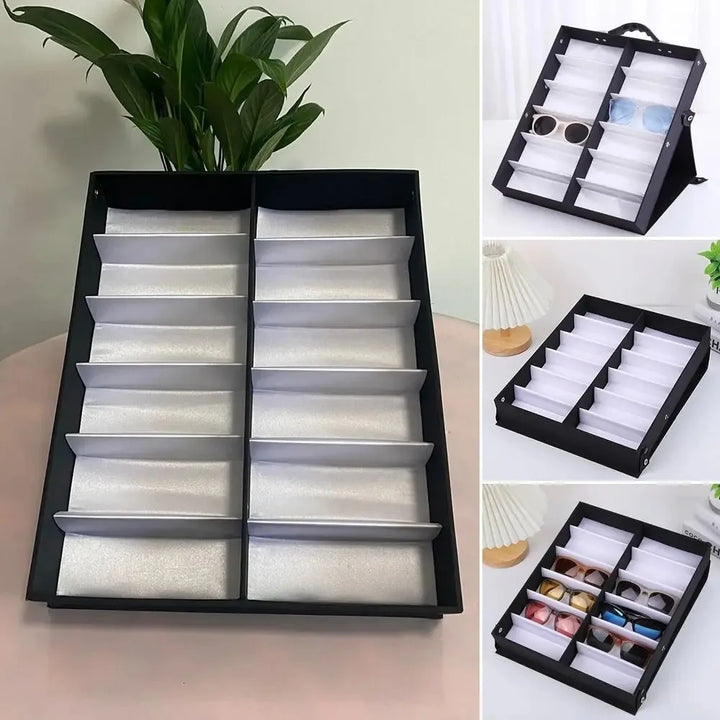 Organize and protect your eyewear collection with this 12/18-slot glasses storage box. Perfect for men and women, it keeps sunglasses and eyeglasses neatly displayed and safe, making it ideal for collectors and daily use.