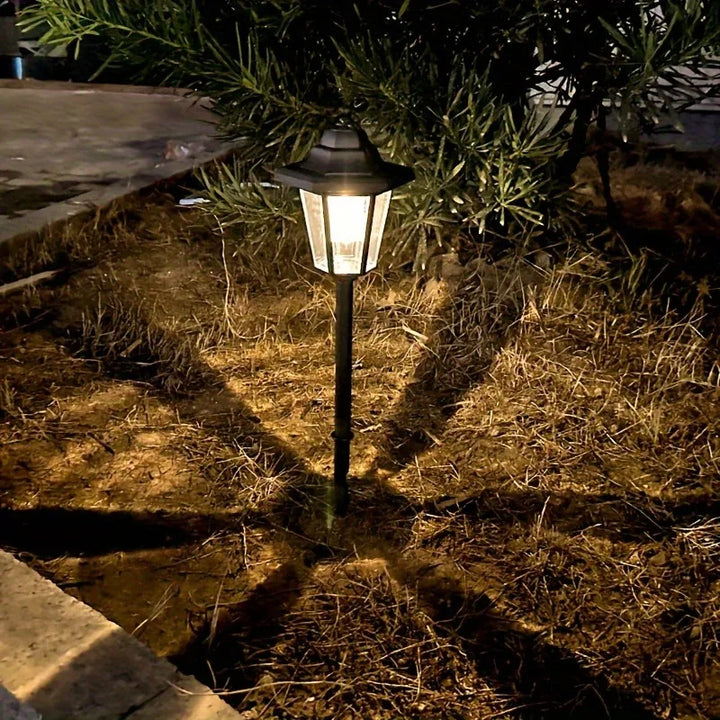 This 2-pack of vintage hexagon LED solar lights adds a charming glow to your garden, pathway, or yard. Made from durable plastic material, these solar-powered lights are easy to install and require no wiring. Perfect for outdoor decoration, they charge during the day and illuminate automatically at night, creating a cozy and inviting atmosphere while being energy-efficient and eco-friendly.