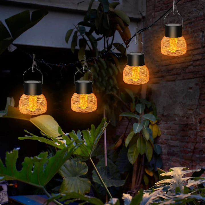 Create a warm, cozy ambiance with these 4PC solar hanging flickering flame string lights. Waterproof and solar-powered, they are perfect for gardens, patios, yards, fences, and festive occasions like Christmas or parties. Easy to install and energy-efficient, they add charm and a magical glow to any outdoor space.