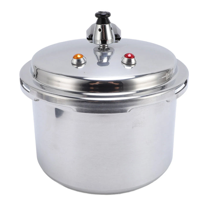 Large-capacity aluminum pressure cooker for fast and efficient cooking. Ideal for preparing stews, soups, and meals quickly at home.