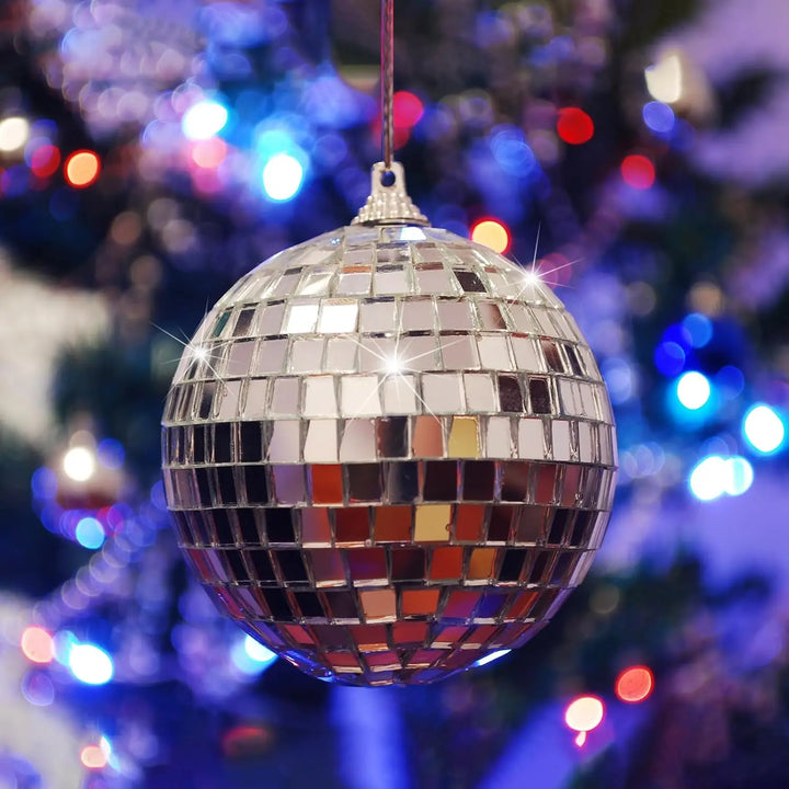 Add sparkle to any occasion with this shiny disco mirror ball. Its reflective glass design scatters light beautifully, creating a fun party atmosphere. Perfect for weddings, nightclubs, carnivals, Christmas trees, or as a unique gift.