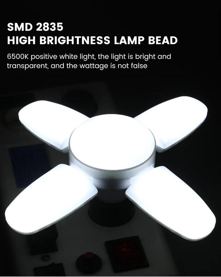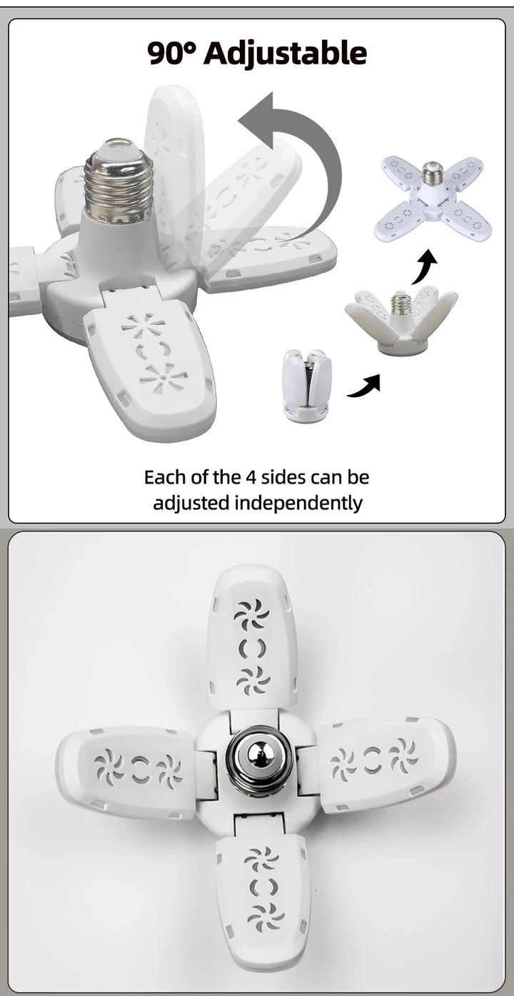 E27 Foldable Fan-Shaped LED Bulb – 28W Adjustable Light for Home & Garage
