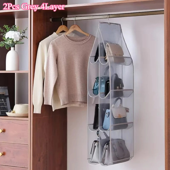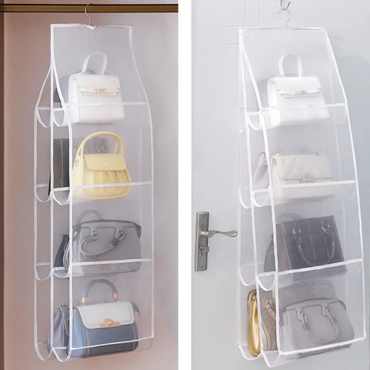 Keep your handbags neat and dust-free with this Hanging Storage Bag Organizer. Available in 3 or 4 layers, it’s made from eco-friendly, transparent material for easy visibility and quick access. Perfect for closets, bedrooms, or dressing rooms — a practical and space-saving way to organize your bags stylishly.