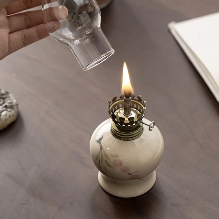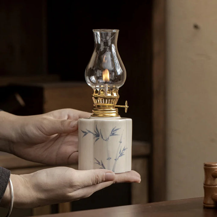 Kerosene Lantern, Ceramic Oil Lamp, Candle Holder, Hand-Drawn Floral Design, Wedding Decoration, Party Table Decor, Home Room Ornament, Craft Lantern